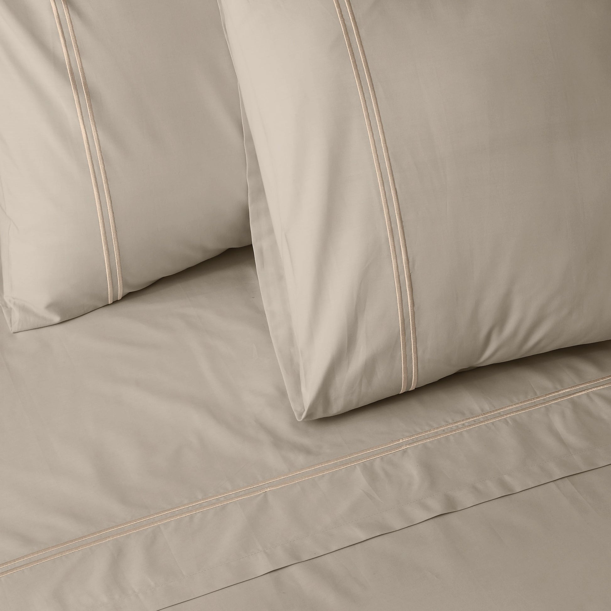 200TC ORGANIC COLOURED EMBROIDERED SHEET SET - DUNE