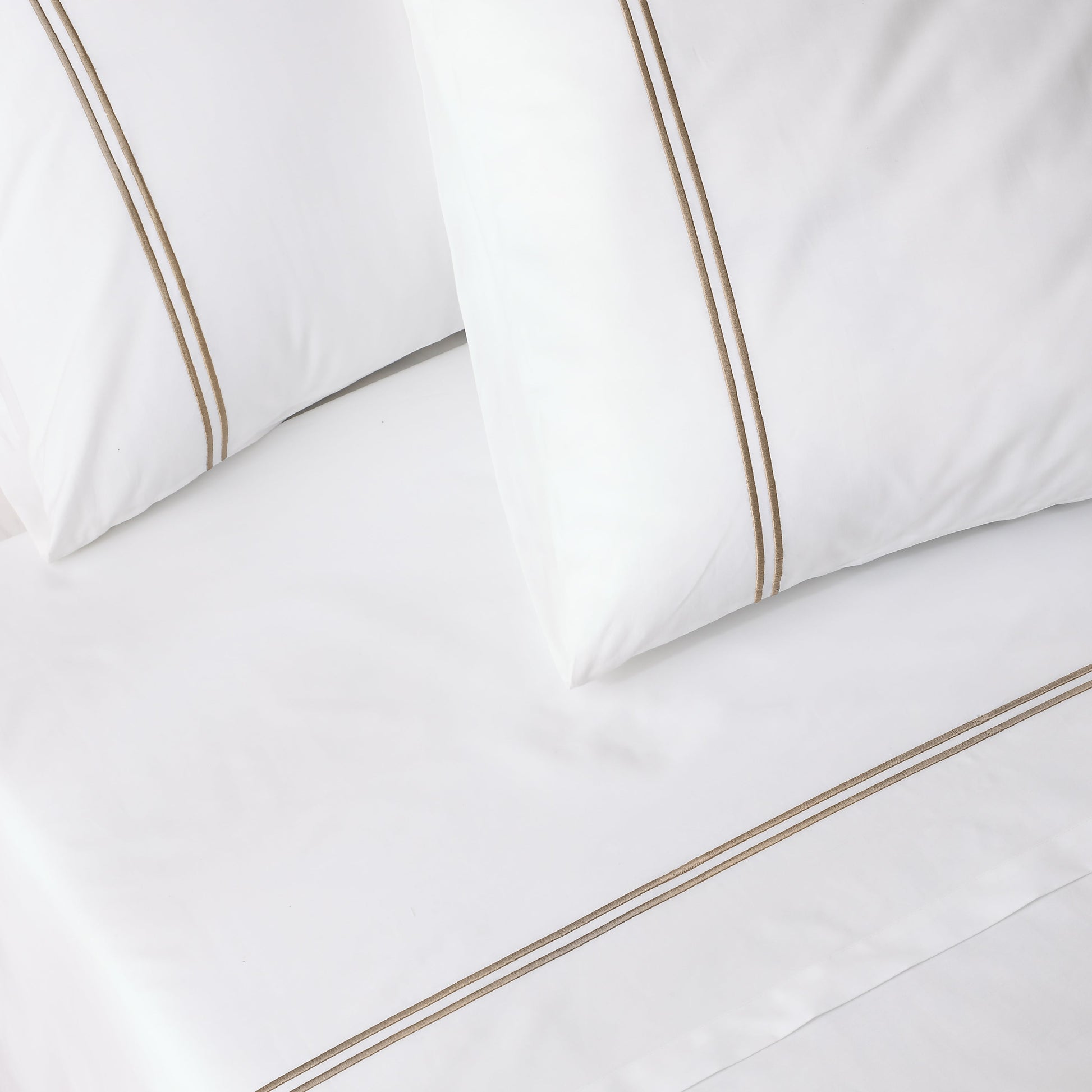 200TC WHITE ORGANIC COTTON EMBROIDERED SHEET SET - DUNE ON WHITE