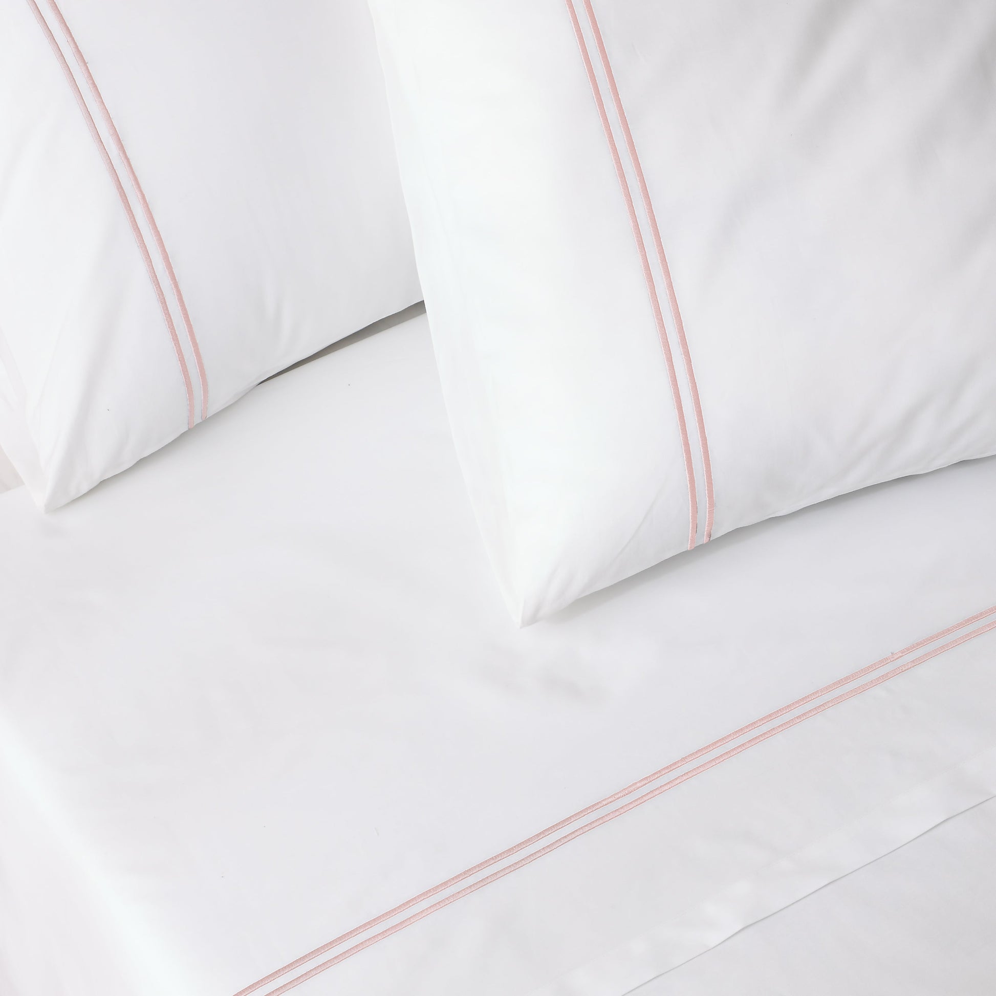 200TC WHITE ORGANIC COTTON EMBROIDERED SHEET SET - DUSTY PINK ON WHITE