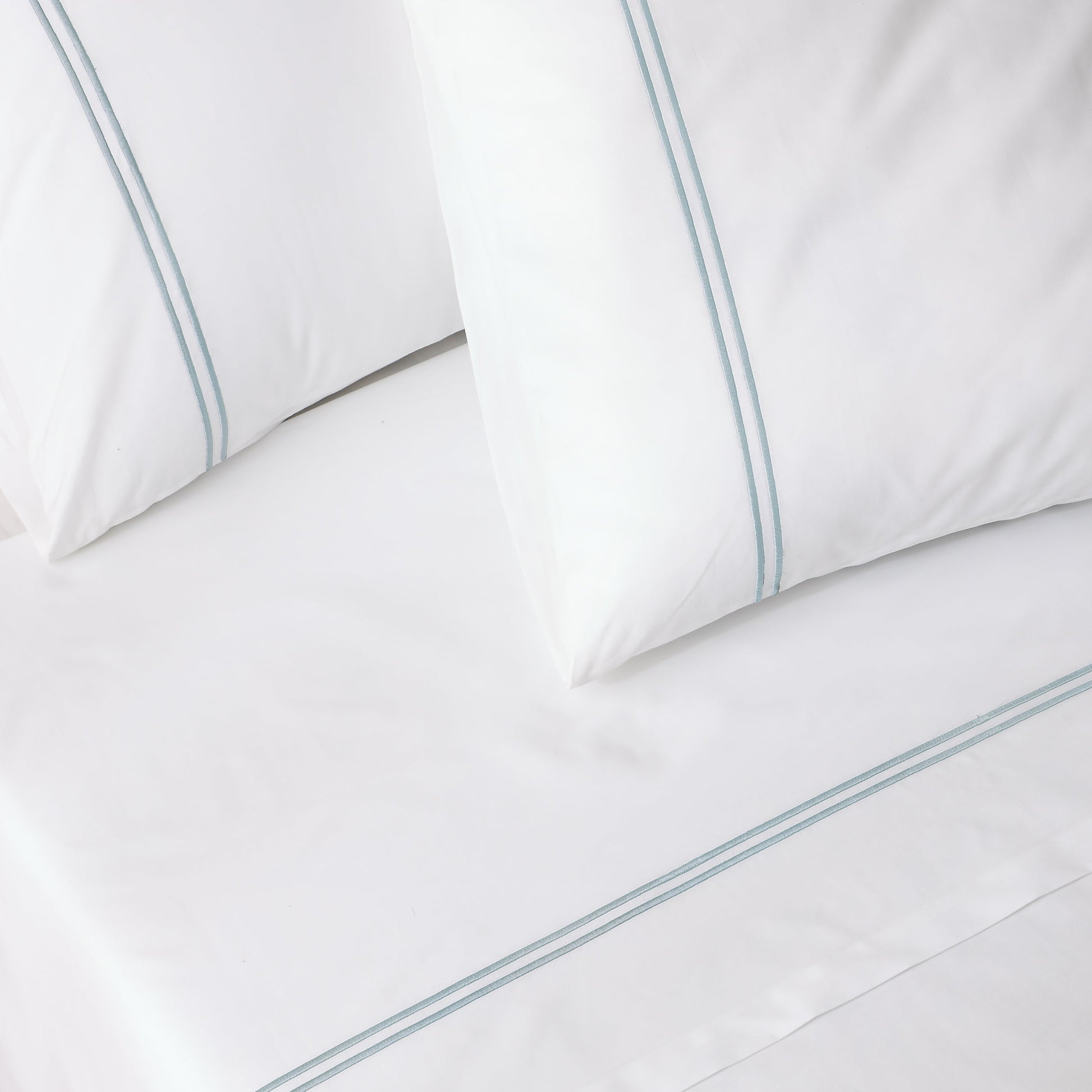 200TC WHITE ORGANIC COTTON EMBROIDERED SHEET SET - SKY ON WHITE